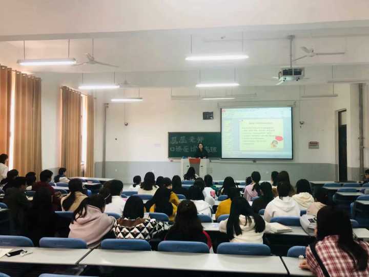 本次提高班分为两大环节,第一环节是赵蕊亲自纠正大家在日常英语口语学习中的错误发音,强化学生的英语日常交际技巧;第二环节是赵蕊通过自身经历向大家讲解英语面试时需要注意的问题与技巧,以及如何提高英语口语面试成绩。同时,赵蕊强调了英语口语的重要性,希望大家能够坚持学习。提高班结束后,学生们表示自己在本次提高班中收获颇多,十分珍惜这次英语口语学习的机会,将不负老师的期望在今后加强英语口语的训练。
