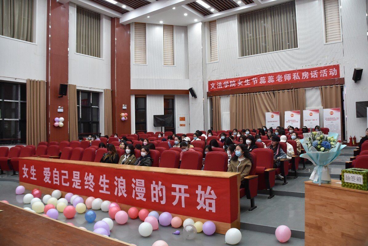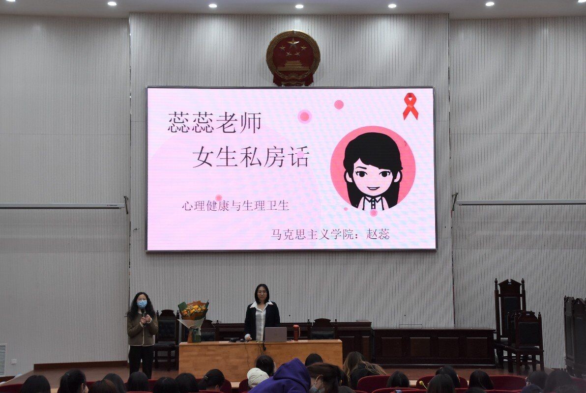 教师赵蕊担任主讲嘉宾,2021级辅导员赵梦闪、全体女生参加活动。