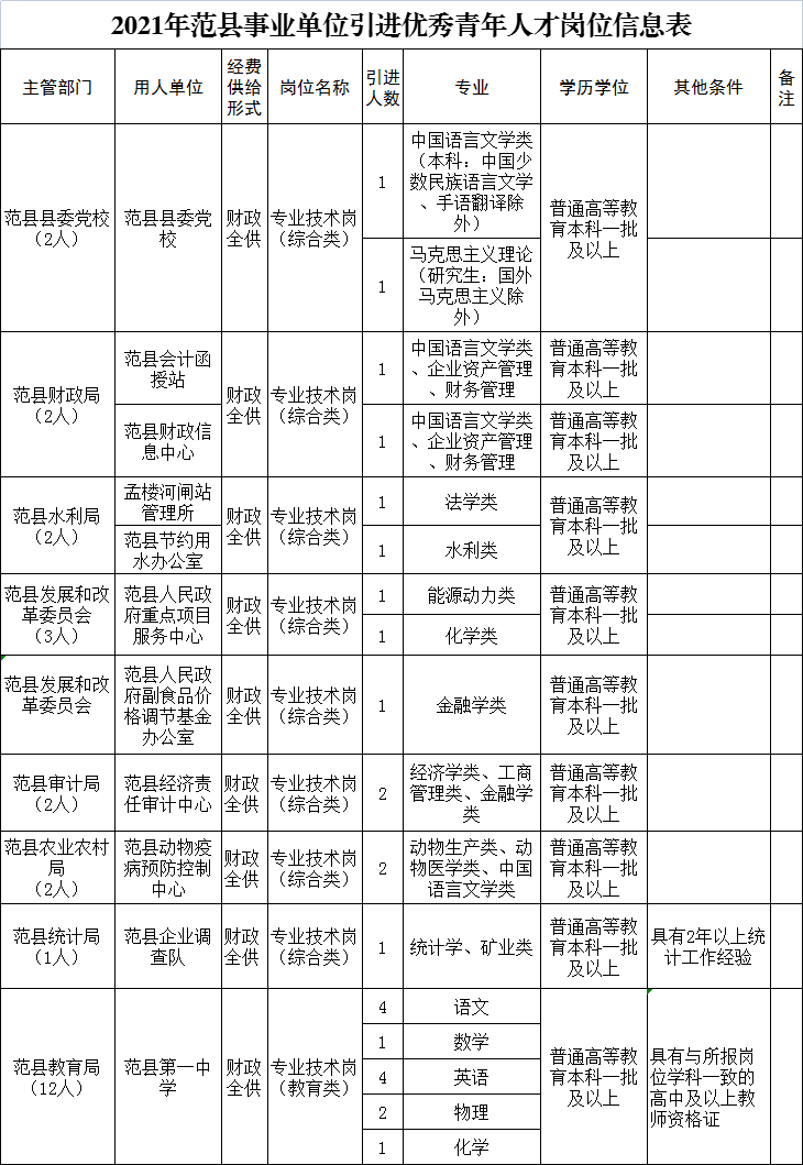 本公告未尽事宜按照国家、省、市相关文件的规定执行,由2021年范县企事业单位引进优秀青年人才工作领导小组办公室负责解释。