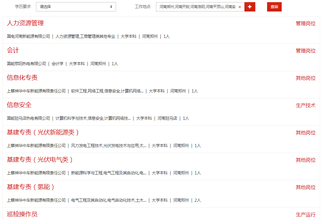1. 查询职位。登陆国家能源集团人力资源招聘网站(//zhaopin.chnenergy.com.cn)校园招聘栏查询岗位信息。
