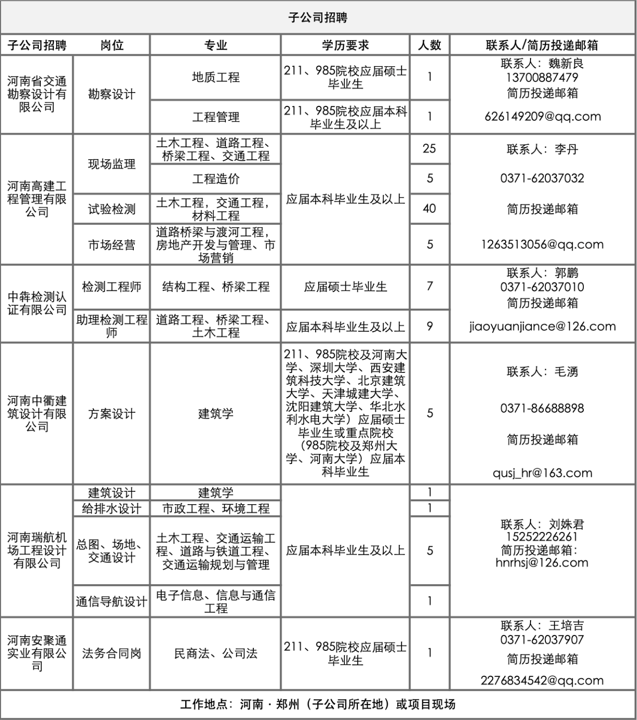 根据公司未来战略规划安排,并结合业务快速发展的需要,公司需广纳贤才,吸纳更多的优秀学子加入到我们的团队,一同服务于我国交通建设行业。现发布2022年度应届毕业生招聘公告,具体招聘岗位如下: