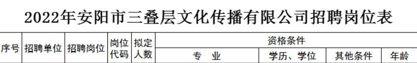 附件:1.2022年安阳市三叠层文化传播有限公司招聘岗位表