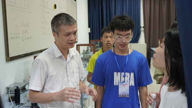 的洁净实验室、光学实验室等,面对从未见过的实验仪器,他们秉承求知之心,向实验室负责老师提出了自己的疑问,而老师们也都耐心地向他们讲解实验原理与仪器使用方法。