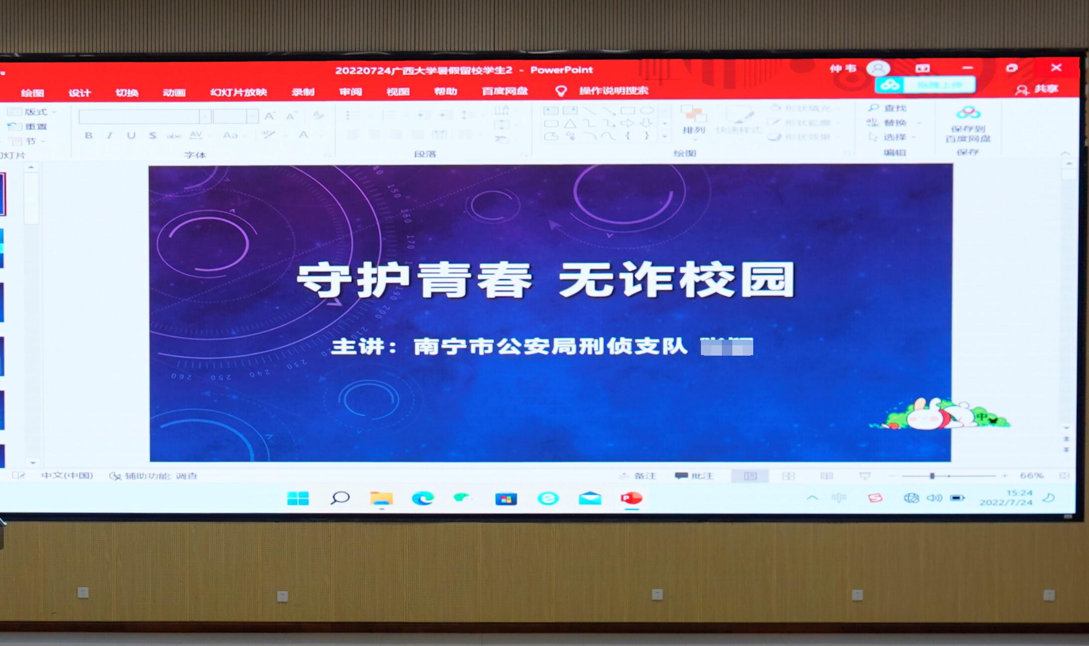 为普及反诈骗知识,降低大学生受诈骗率,2022年7月24日,南宁市公安局刑侦支队在资环材太阳城博彩