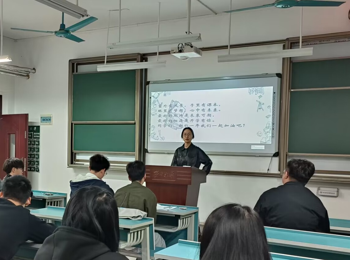 袁涛书记从“盘点、定位、规划、启航”等四个方面讲述,为毕业生理清了思路、指明了方向、坚定了信心。他强调,党员同志应在最后一个学期认真规划职业生涯目标,发挥好党员的先锋模范作用,以昂扬的精神面貌、积极的生活态度做到承前启后,继往开来。同时,袁书记以“起步就是冲刺,开局就是决战”,对毕业生党员寄予厚望。