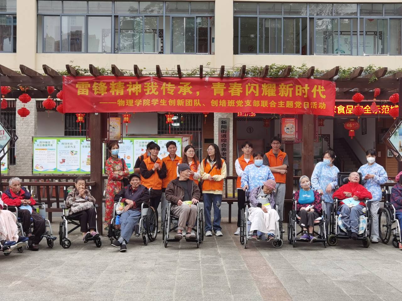 学生创新团队党支部与创培班党支部赴重阳老年公寓联合开展“雷锋精神我传承,青春闪耀新时代”主题党日活动,为老人们送去温暖和爱心,以实际行动践行雷锋精神。