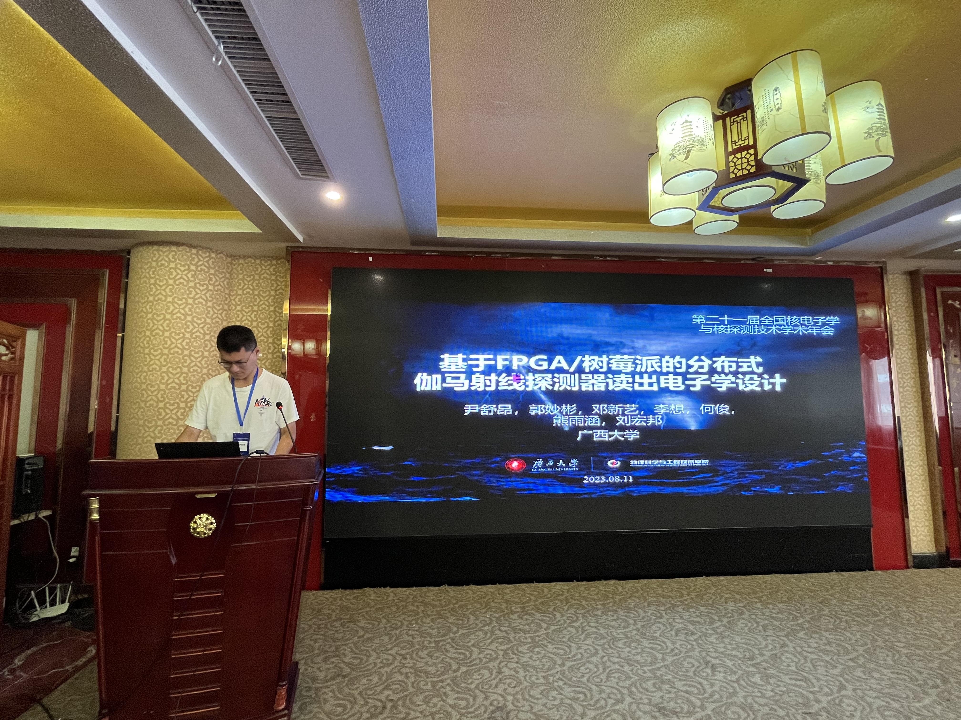 会上,尹舒昂同学作了题为“基于FPGA/树莓派的分布式伽马射线探测器读出电子学设计”的口头报告,报告针对地面伽马闪的产生特点展示了项目中使用的探测器读出电子学设计。