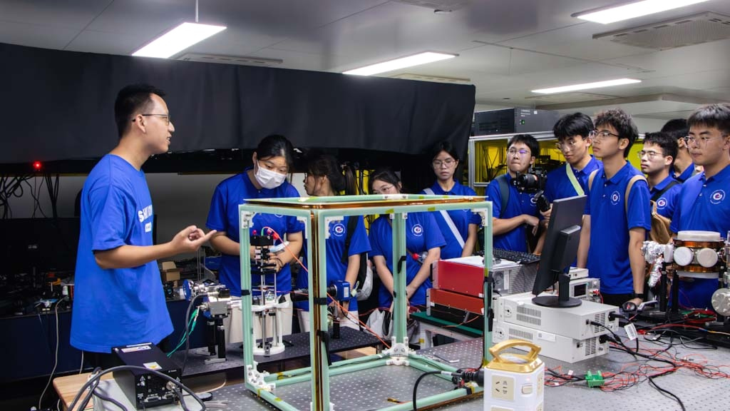 上海光学精密机械研究所,听取了主题为“相干激光探测技术研究及发展趋势”的专家报告。卢智勇副研究员从先进的激光技术和前沿的光学材料研究入手,再到尖端的光电探测系统,阐述了激光技术对社会发展的重要作用。随后,同学们参观了光机所内的重要实验室,感受大国重器的力量。