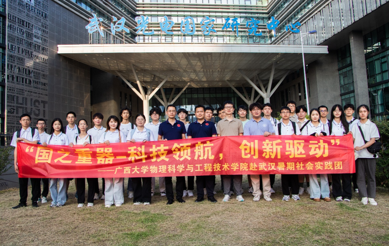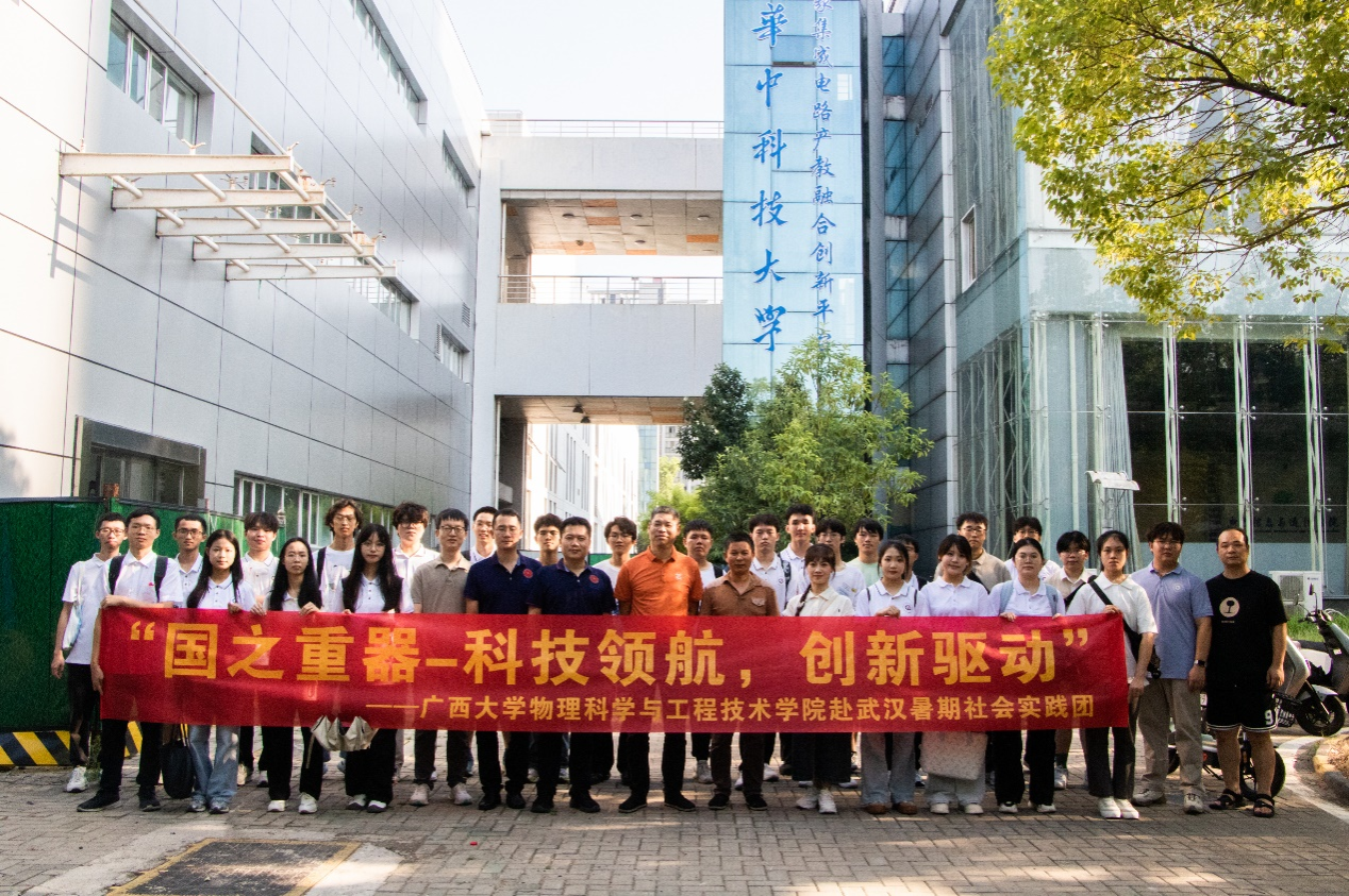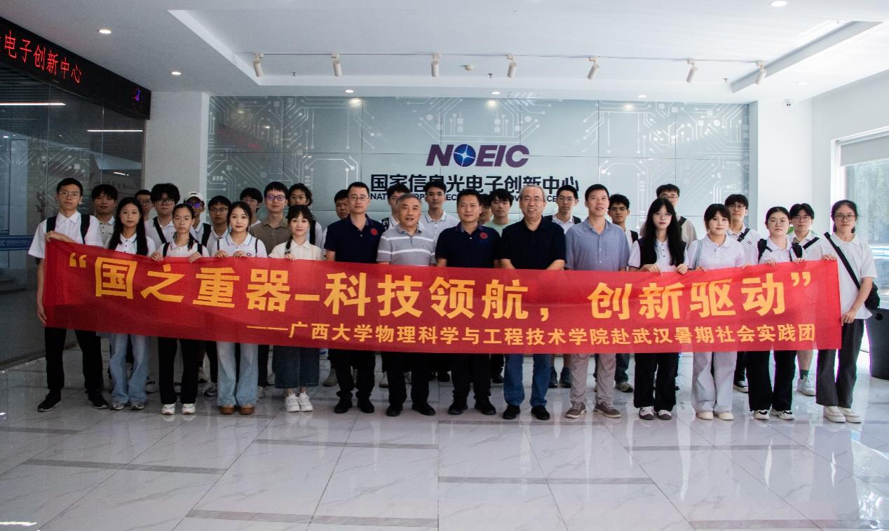 课程结束后,由副院长刘宏邦、院长助理韦克金、电子系教师莫小明、刘官林、团委副书记龙思宇带队,27名暑期班学员组成实践团,赴武汉市参观了国家信息光电子创新中心、武汉光电国家研究中心、华中科技大学集成电路产教融合平台、华中师范大学硅像素实验室,聆听专家报告,开展座谈交流,近距离接触各类芯片的科研生产平台和先进制作工艺。