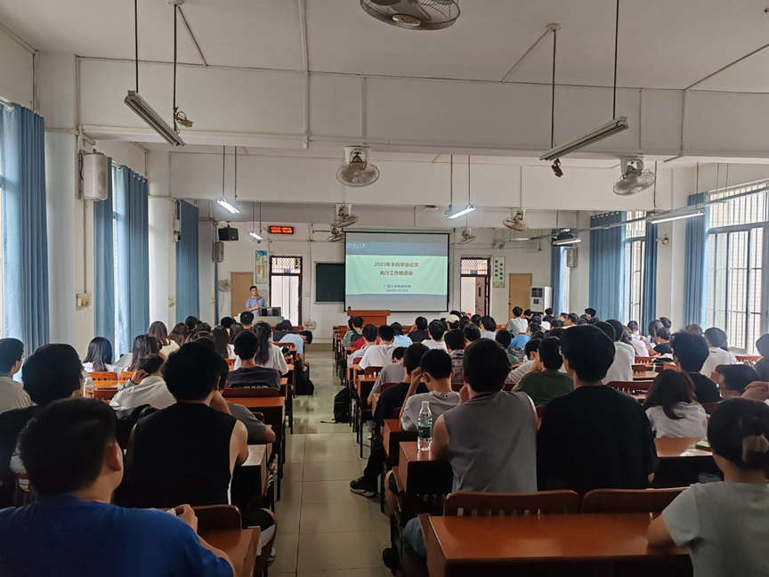 在西2-201教室召开2025年本科毕业设计(论文)工作推进会。会议由电子系副主任曹盛老师主持,物理系副主任黄永波老师及全体2025届本科毕业生参加本次会议。