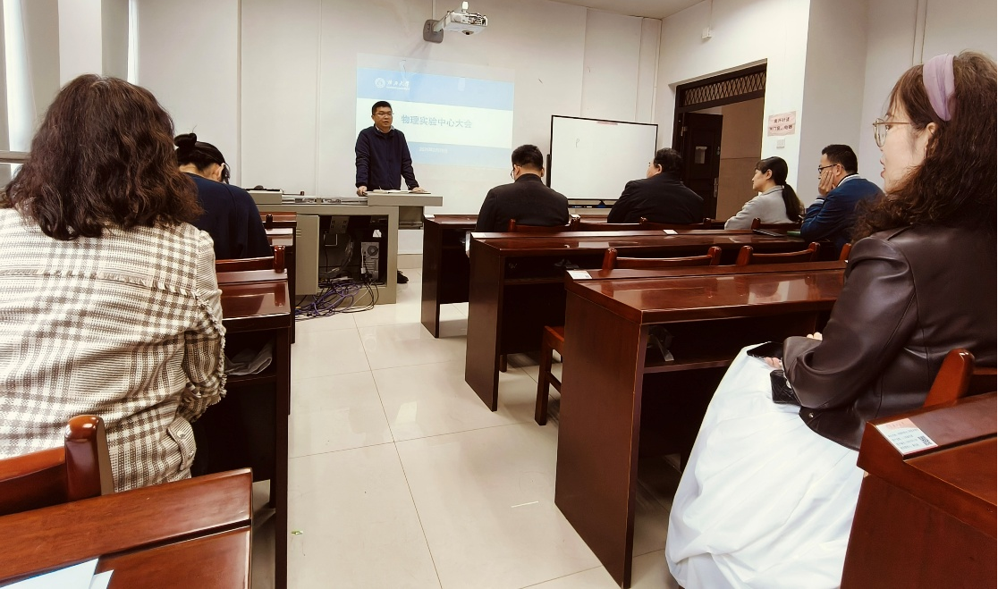 物理实验中心在物理楼D701召开教师工作会议。会议由实验中心主任曹盛主持,中心全体教师参加。
