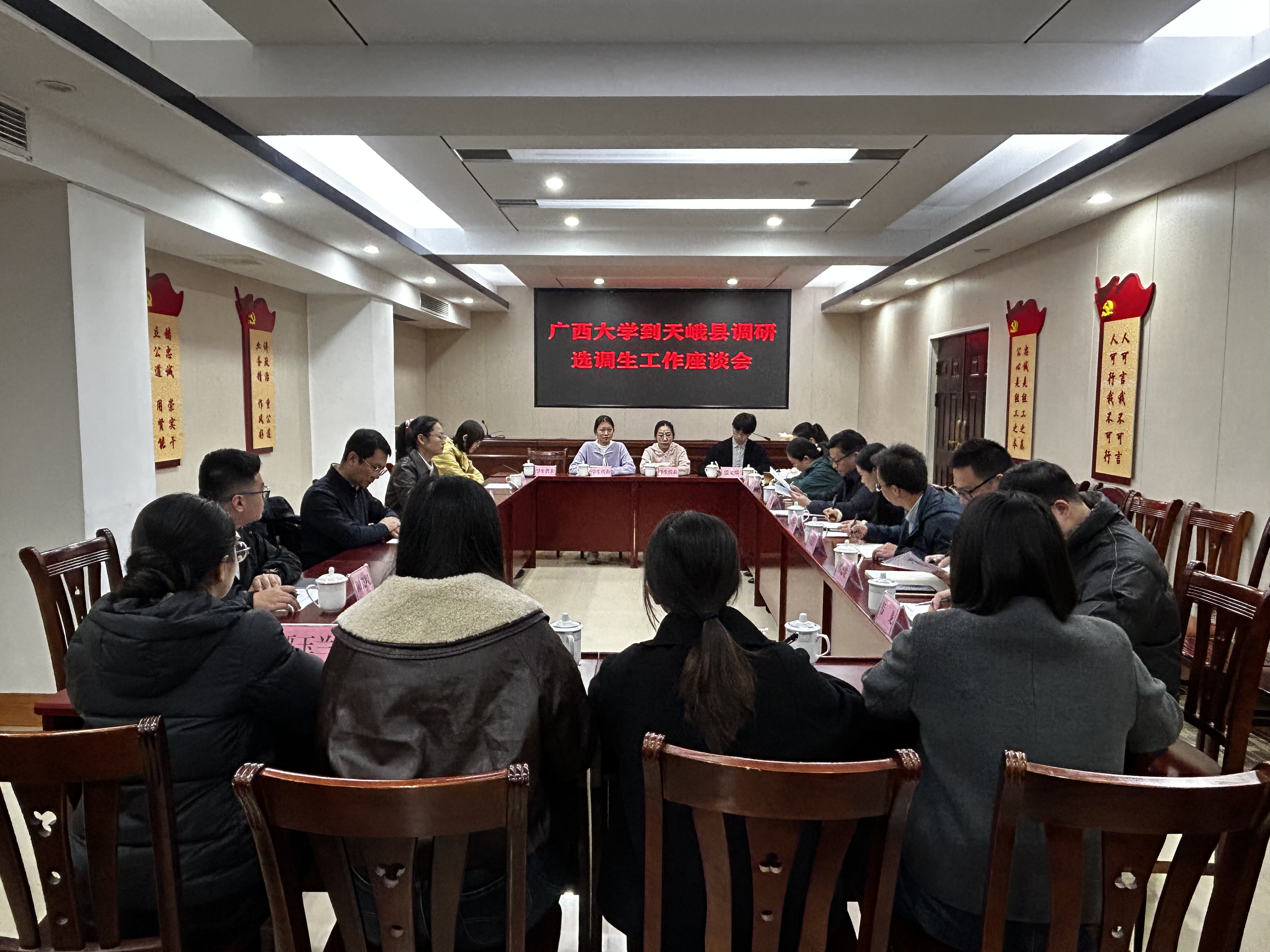 党委副书记孙晓黎带队前往河池市天峨县走访调研选调生工作。天峨县委常委、组织部部长卢仁国及有关负责同志参加座谈交流。