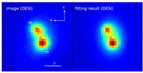 Fig. 1: photometric image including two cores, and best fitting results to the image.