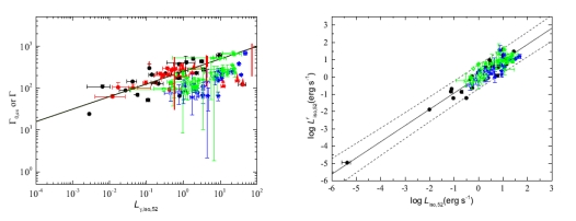 喷流洛伦兹因子可以基于瞬时辐射阶段双光子湮灭成正负电子对所造成的能谱高能截断来计算。以往的研究往往只关注伽马暴进程中特定阶段的洛伦兹因子,喷流洛伦兹因子在伽马暴进程中的演化并没有被关注和研究。研究小组基于费米卫星所观测到的伽马暴瞬时辐射数据,寻找具有高能截断能谱特征的伽马暴脉冲,并拟合光变和能谱计算对应于不同脉冲的喷流洛伦兹因子。他们得到9个伽马暴,每个伽马暴均有2个或以上脉冲具有高能截断能谱特征,估计了这些暴不同脉冲的喷流洛伦兹因子或上限,发现大部分伽马暴的喷流洛伦兹在一定范围内波动,并没有表现出特定的演化趋势;GRB 130821A、GRB 160509A 和GRB 160625B的喷流洛伦兹因子随时间增加。我们也研究了样本脉冲的Liso、Ep,z和洛伦兹因子三者之间的关系,相关关系与前人研究结果一致。研究工作论文被《天体物理学杂志》(The Astrophysical Journal)接收发表。