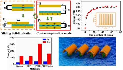 摩擦纳米发电机是收集低频水波能的一种具有发展前景的能源技术,而产生高的表面电荷密度是实现摩擦纳米发电机高输出的关键因素之一。然而,在实际工作中,产生高表面电荷密度并长时间维持是一个难题。传统的接触分离模式由于摩擦不充分难以达到高表面电荷密度,而滑动摩擦模式虽可大幅提升表面电荷密度但摩擦损耗会降低使用寿命。针对以上问题,太阳城博彩