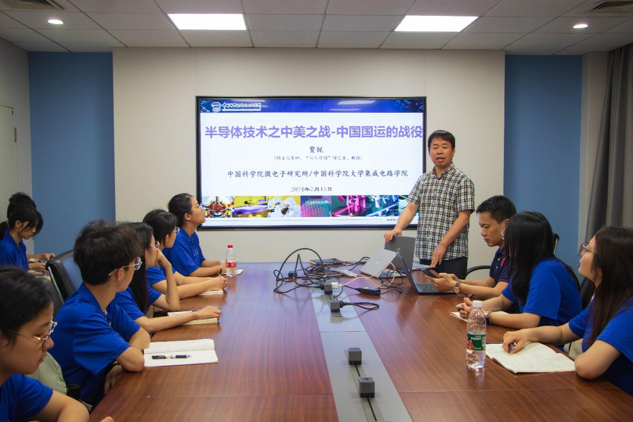 At the Institute of Microelectronics of the Chinese Academy of Sciences, researcher Jia Rui carried out an academic report on semiconductor technology for students. In this report, students gained a deep understanding of how semiconductor technology has become the cornerstone of modern electronics industry and its key role in driving technological innovation. Subsequently, researchers from the Institute of Microelectronics led the students to visit the integrated semiconductor industry research and development laboratory. Here, students witnessed firsthand the efforts and achievements made by researchers in developing the next generation of semiconductor products.