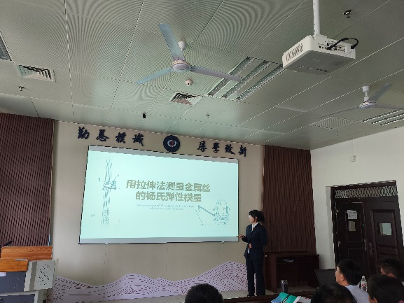 比赛中,9组选手各自选取特色题目,精神饱满、思维活跃,以严谨的科学态度和创新的教学理念,将复杂的物理实验知识深入浅出地呈现出来。选手们从课程思政融入、教学设计构思、实验原理阐述到操作技巧展示等多个维度,全方位展现了物理实验课程的教学全过程,彰显了扎实的专业基础和出色的教学能力。评审专家们从教学设计、教学语态、多媒体运用、课程思政等角度对参赛选手进行了全面点评与指导。